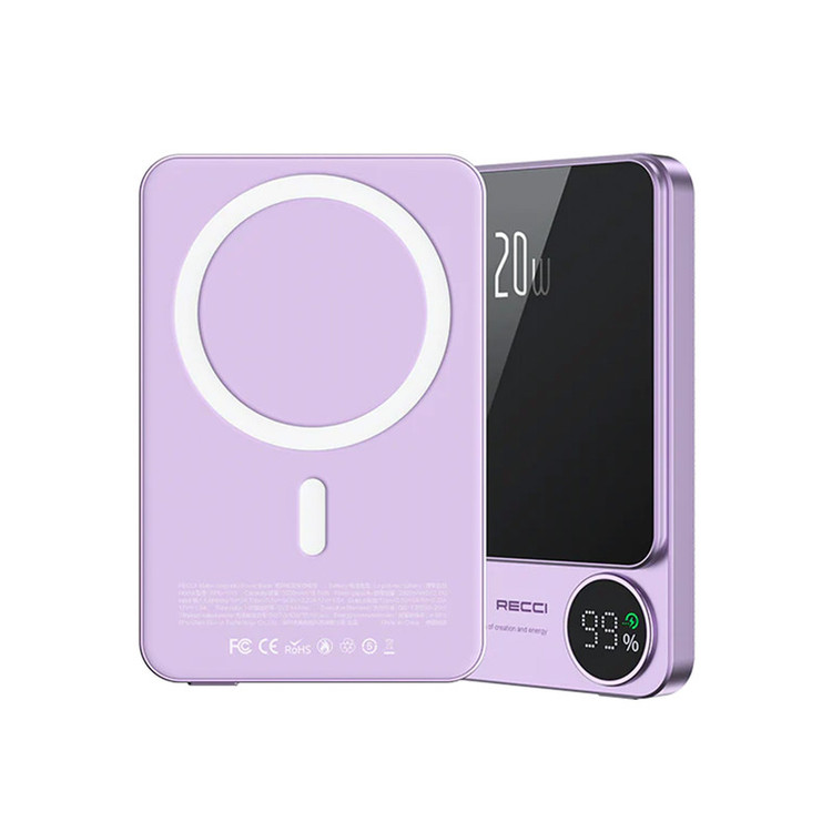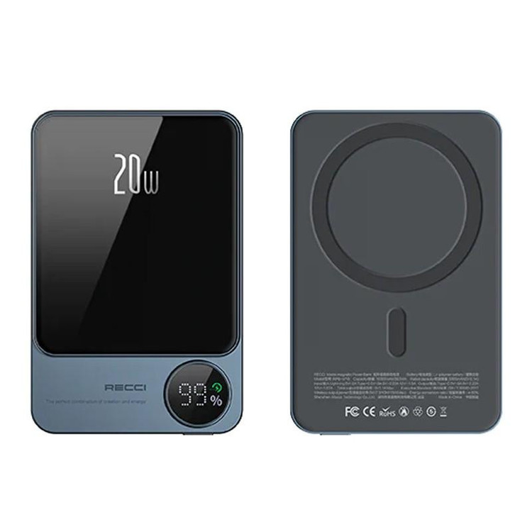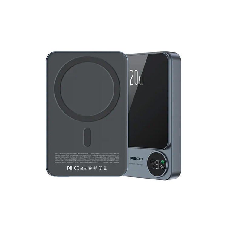 ظرفیت ۱۰۰۰۰mAh مگنتی با قابلیت شارژ وایرلس توان شارژ وایرلس ۱۵W توان شارژ با کابل ۲۰W دارای صفحه نمایشگر میزان شارژ ورودی lightening و TypeC خروجی TypeC