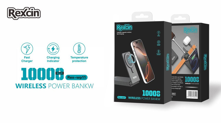 پاوربانک رکسین مدل rex-wp11 ظرفیت 10000 میلی آمپرساعت