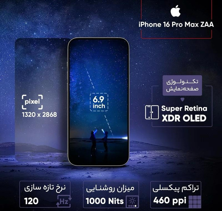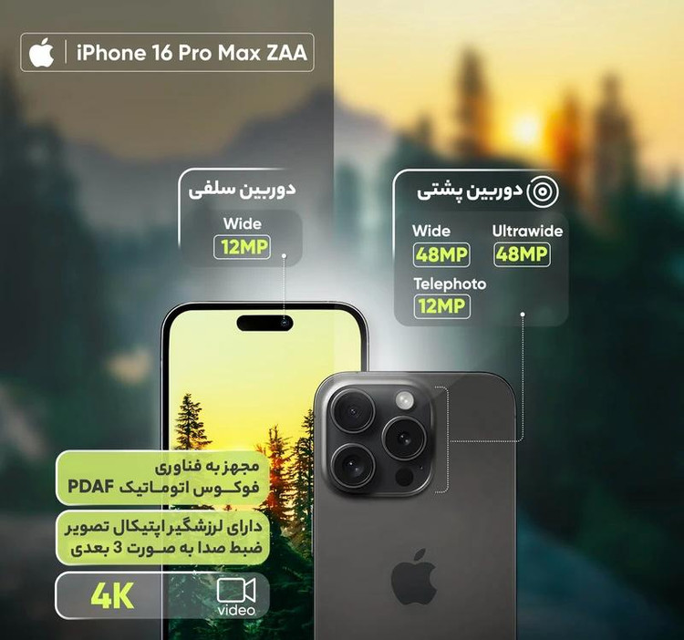 گوشی اپل iPhone 16 Pro Max ZAA رجیستر‌شده دو سیم‌کارت 256 گیگابایت با رم 8 گیگابایت