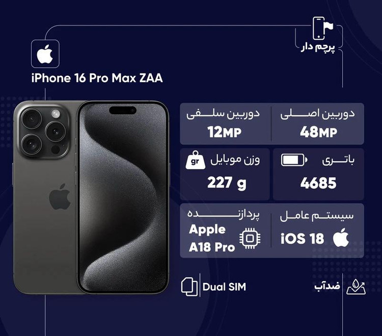 Apple iPhone 16 Pro Max ZAA Dual SIM Storage 256GB And RAM 8GB Mobile Phone