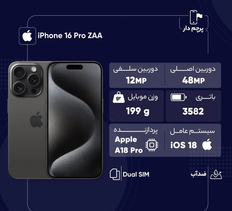 ویژگیهای کلیدی : دارای گواهی IP۶۸ و ضد آب تا عمق ۶متری آب به مدت ۳۰ دقیقه / امکان ارتقا سیستم عامل به iOS نسخه ۱۸.۱ / مجهز به سیستم ارتباطی Ultra Wideband / مجهز به سیستم پیام اضطراری SOS و مکان یابی توسط ماهواره / امکان فیلمبرداری ۴K با سرعت ۱۲۰ فریم بر ثانیه