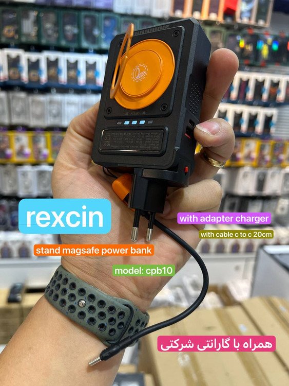 پاوربانک REXCIN مدل REX-WP11 یک پاوربانک بیسیم با ظرفیت ۱۰۰۰۰ میلیآمپر ساعت است که از شارژ مغناطیسی (MagSafe) و شارژ سیمی (Type-C) پشتیبانی میکند. این پاوربانک دارای قابلیتهای ویژهای مانند شارژ بیسیم با توان ۱۵ وات و شارژ سیمی با توان ۲۰ وات است و برای انواع گوشیها و گجتهای مجهز به شارژ بیسیم مناسب است.
