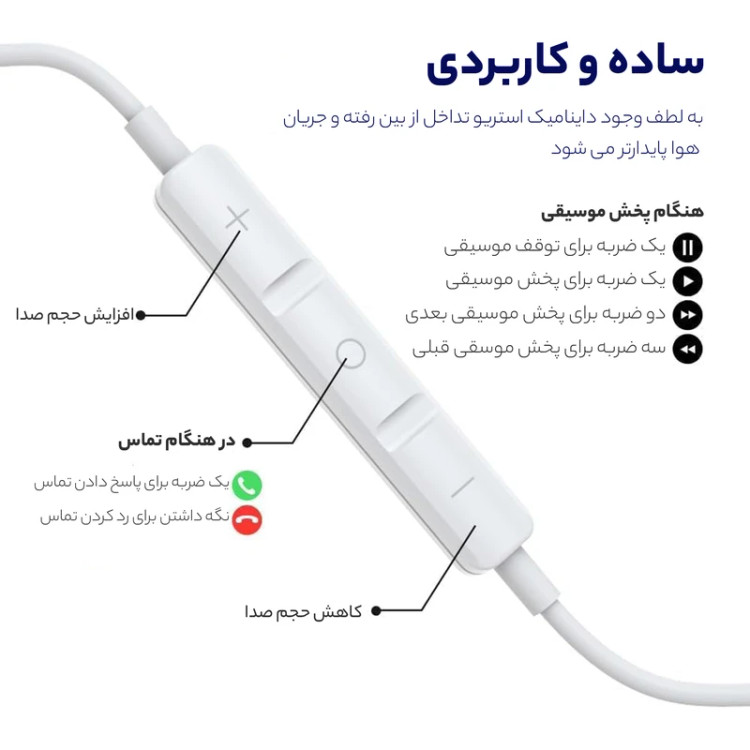 هدفون اپل مدل EarPods با کانکتور لایتنینگ دو گوشی، با رابط لایتنینگ، مناسب برای مکالمه