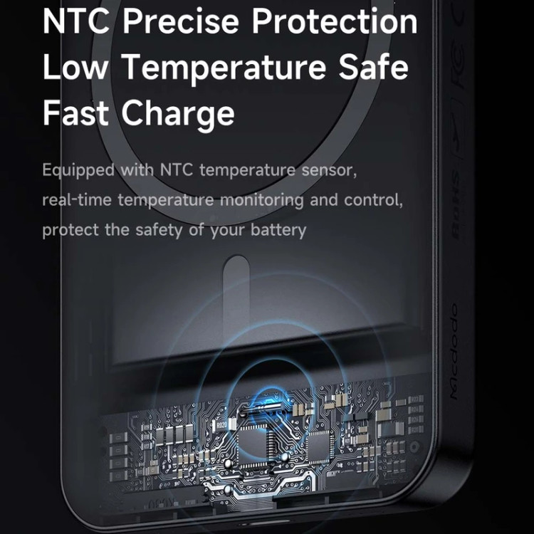 پاوربانک بیسیم 20 وات مک دودو مدل MC-426 ظرفیت 10000 میلیآمپر ساعت مناسب گوشیهای آیفون 12 و جدیدتر و سایر موبایل های دارای قابلیت شارژ بی سیم است. این محصول به صورت مگنتی (مگ سیف) به گوشی متصل میشود و شارژ به صورت وایرلس انجام میشود. حداکثر توان خروجی وایرلس در پاوربانک مک دودو مدل MC-426 ظرفیت 10000 میلی آمپر ساعت، 15 وات و با کابل تایپ سی 20 وات است . یک پورت Type C نیز بر روی این محصول وجود دارد که هم برای شارژ کردن و هم برای شارژ شدن با توان 20 وات قابل استفاده است. البته باید دستگاه شما از این توان و تکنولوژی فست شارژ پشتیبانی کند. پاوربانک مک دودو مدل MC-426 ظرفیت 10000 میلی آمپر ساعت دارای ابعاد 21x67x99 میلیمتر و وزنی حدود 200 گرم است و به راحتی میتوانید آن را حمل کنید. جنس بدنهی این محصول از پلیکربنات ضد حریق ساخته شده و همینطور دارای چراغ LED برای نمایش میزان شارژ است . ورودی تایپ سی : 5V⎓3A | 9V⎓3A خروجی تایپ سی: 5V⎓3A | 9V⎓2.22A | 12V⎓1.67A خروجی وایرالس با توان های : 15W / 10W / 7.5W / 5W است.